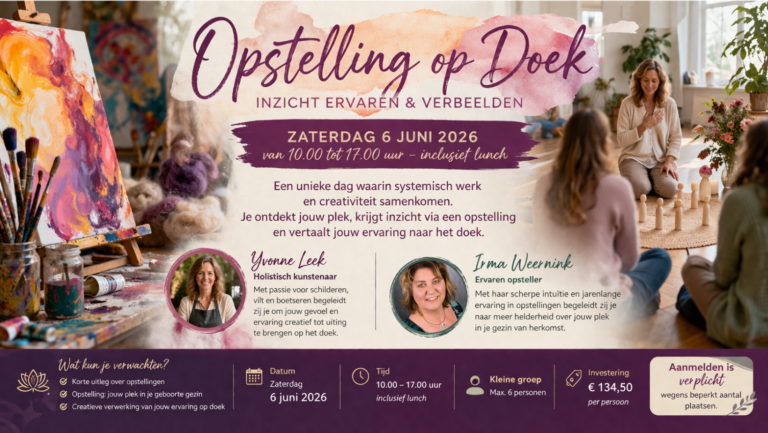 Na je betaling ontvang je een mail van Irma met de bevestiging en praktische gegevens. Door je ticket aankoop ga je akkoord met de voorwaarden van IFSO-opstellingen. *Voorwaarden - IFSO-opstellingen